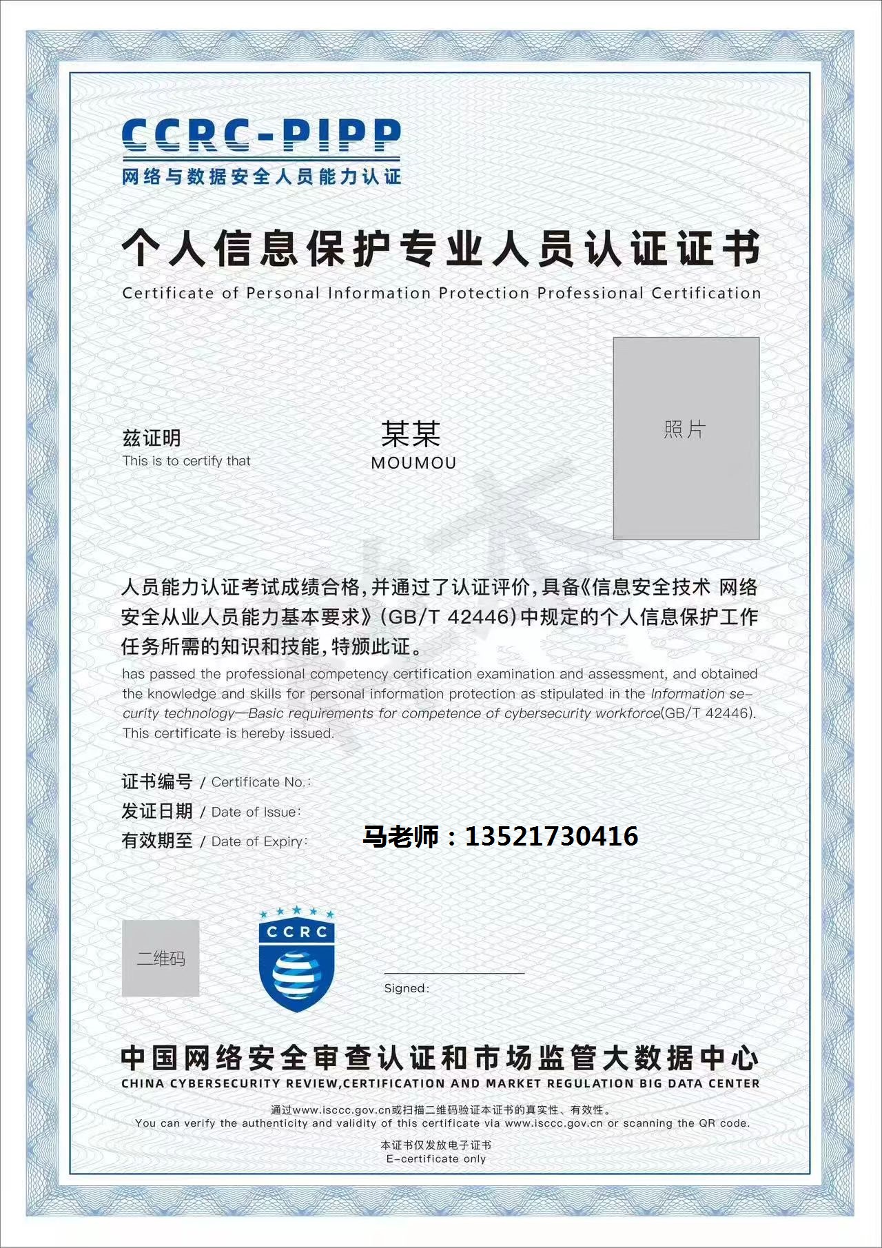 CCRC-PIPP个人信息保护专业人员.CCRC-PIPCA个人信息保护合规审计等数据安全认证青蓝智慧马老师133-9150-9126 / 135-2173-0416.