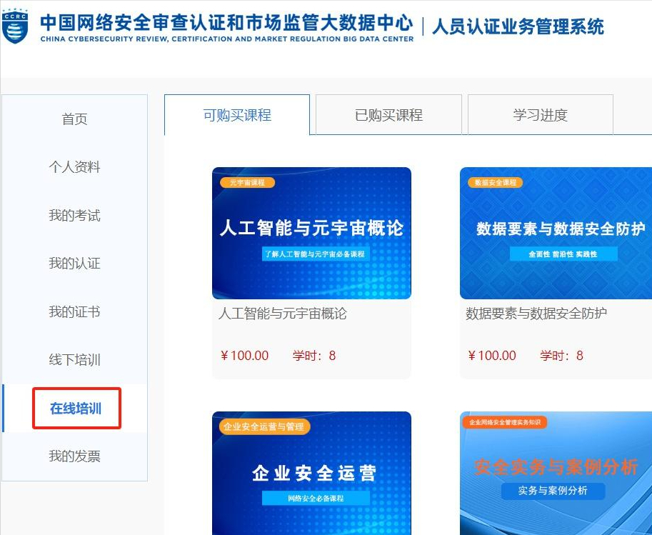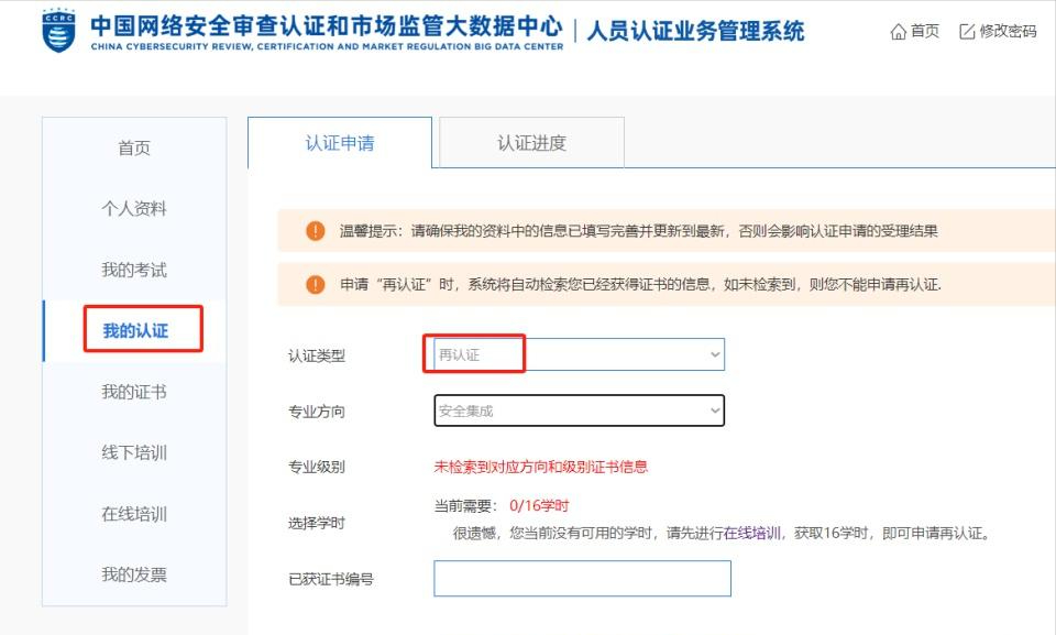 登录入口: 中国网络安全审查技术与认证中心人员认证业务管理系统
