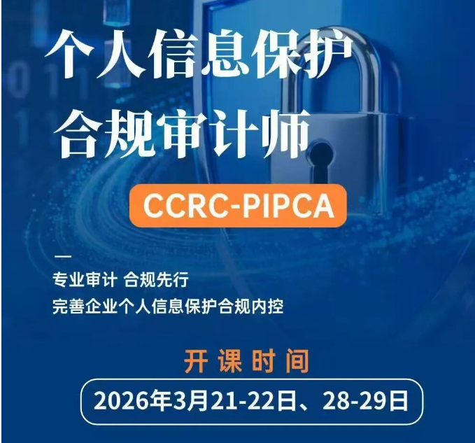 CCRC 【个人信息保护合规审计师(PIPCA)】认证培训课程。本课程旨在培养精通“法律+技术+审计+管理”的实战型审计专家,助您在国家数据合规浪潮中抢占先机,开启职业发展新篇章!