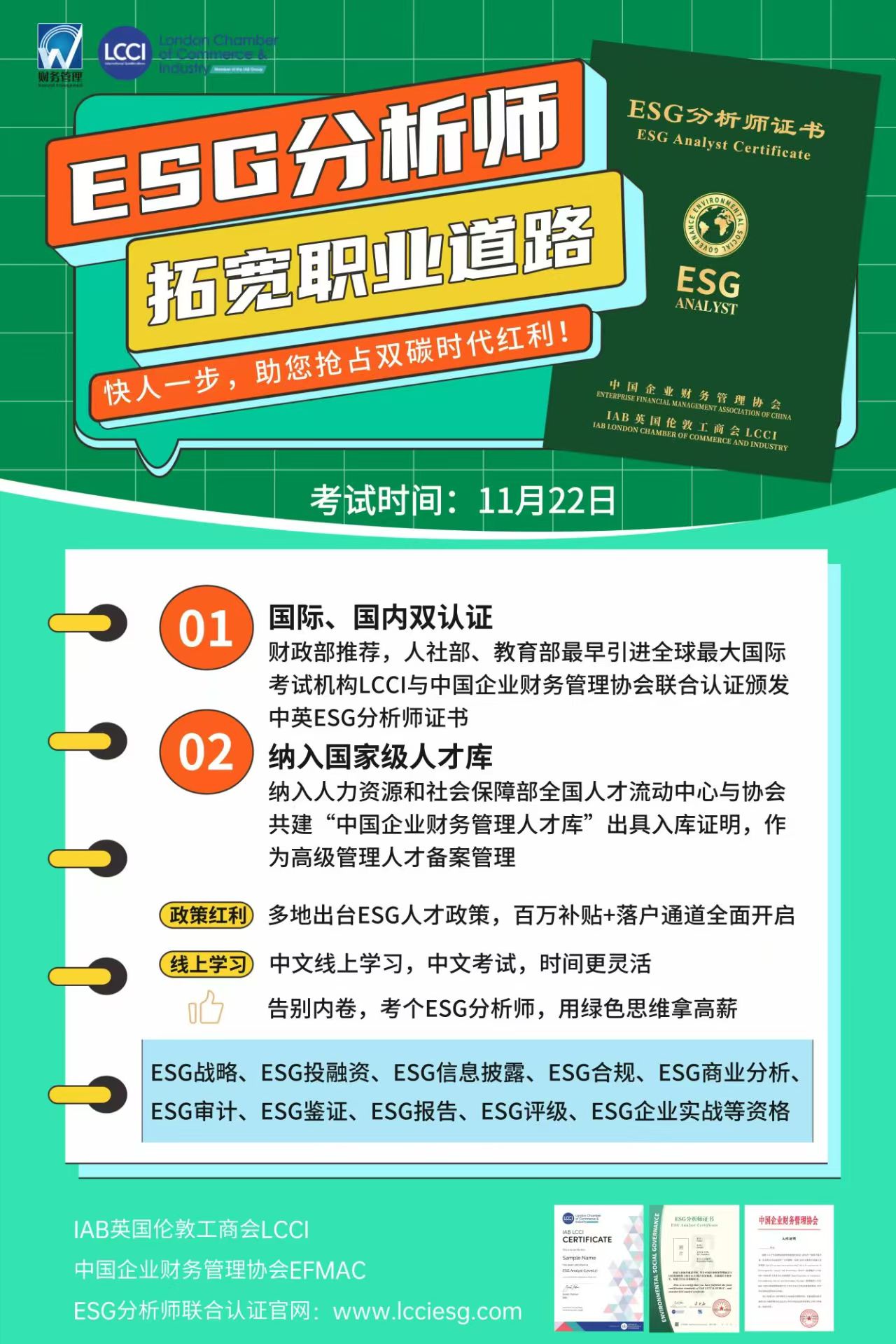 [太阳]LCCI ESG分析师,未来最具价值的证书之一