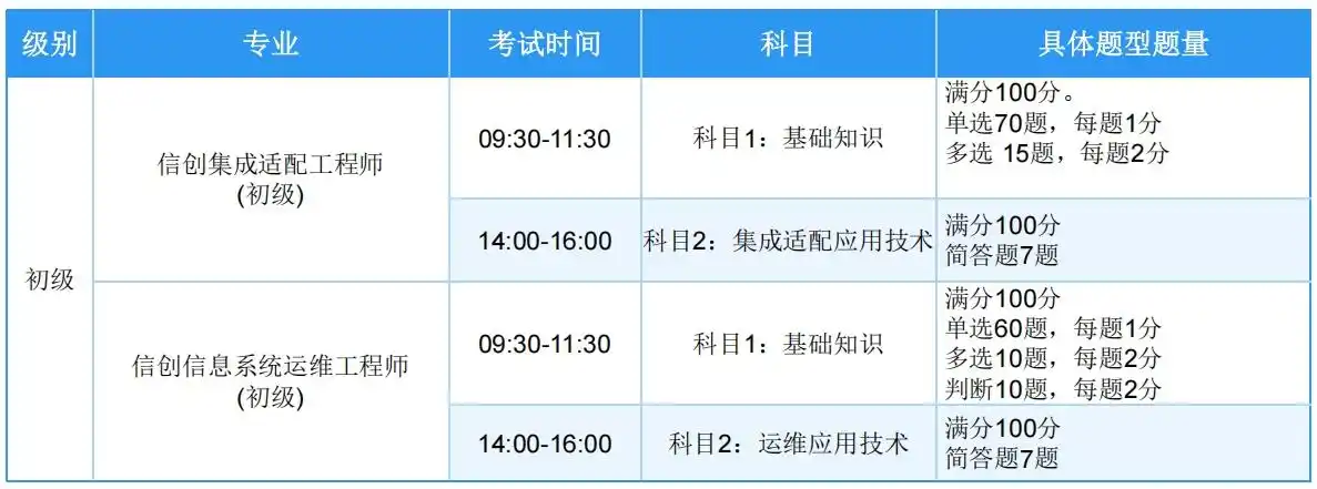 | 初级 | 单选/多选/判断 | 简答题 | 各科≥60分 |
