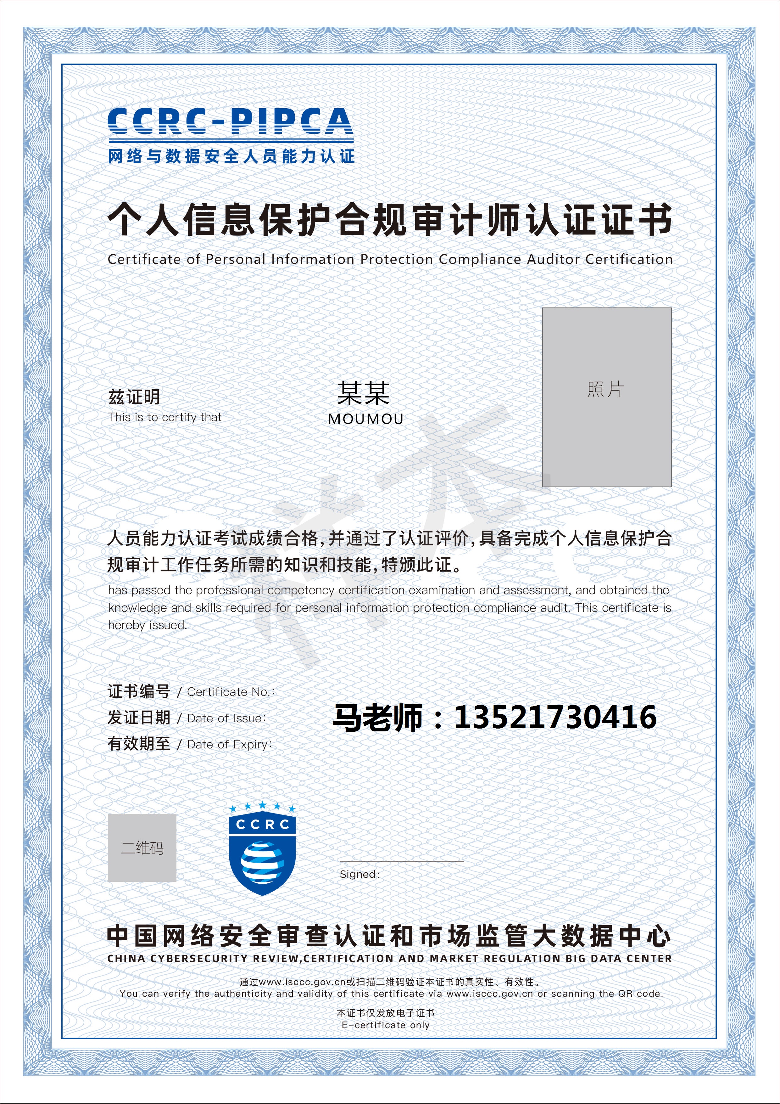 CCRC-PIPCA个人信息保护合规审计认证,CCRC-PIPP个人信息保护专业人员,CCRC-PIPA个人信息保护评估师青蓝智慧马老师: 133 - 9150 - 9126 / 135 - 2173 - 0416