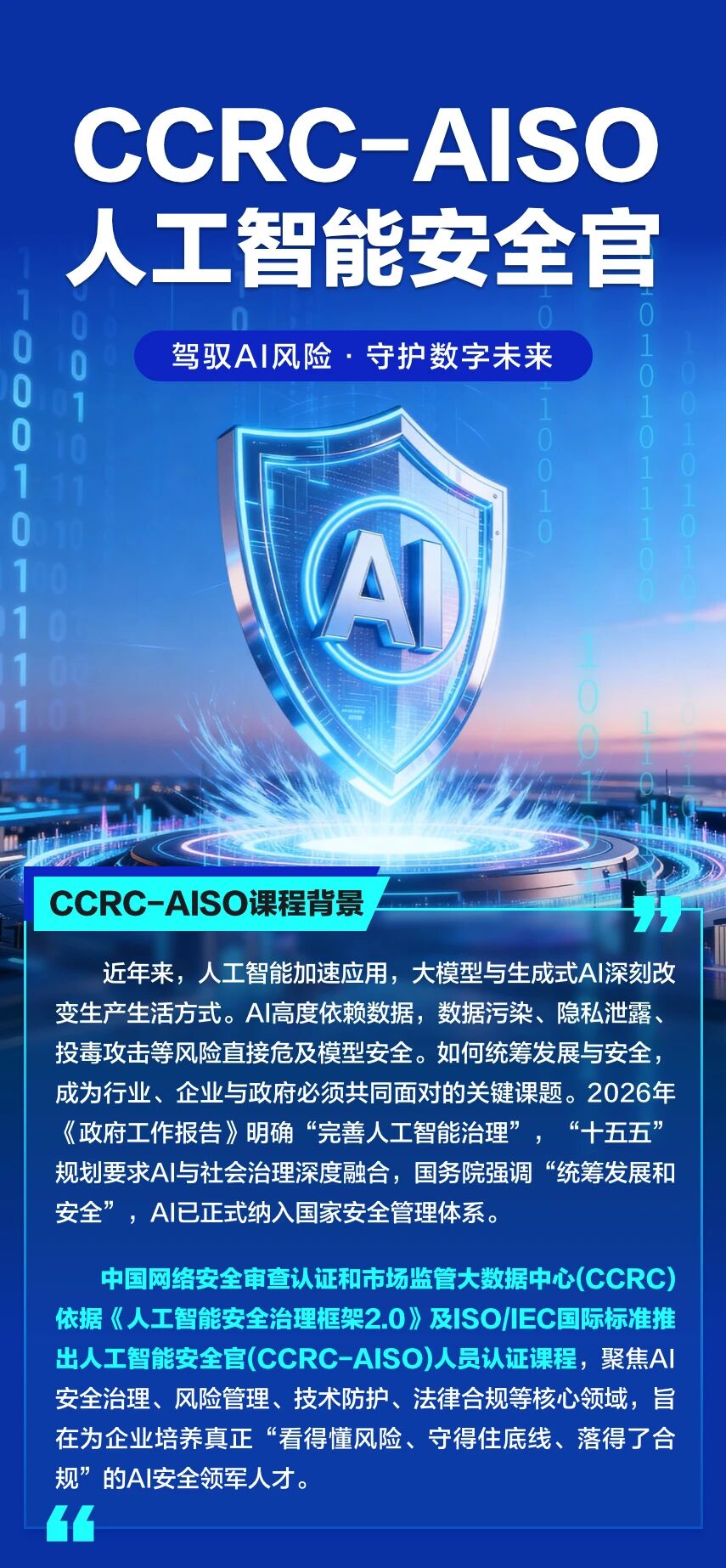 国家权威认证【CCRC-AISO人工智能安全官】首期招募!